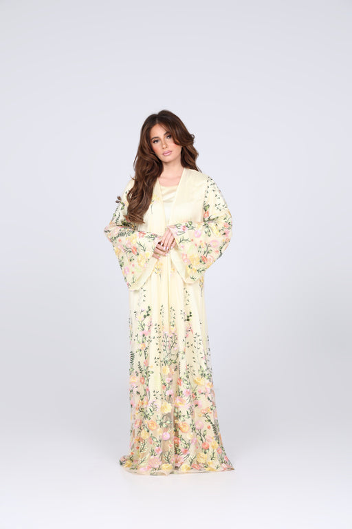 Sakina est un ensemble composé d’un kimono et d’une sous-abaya assortie, conçu pour offrir une silhouette aérienne et raffinée. Le kimono, confecti...