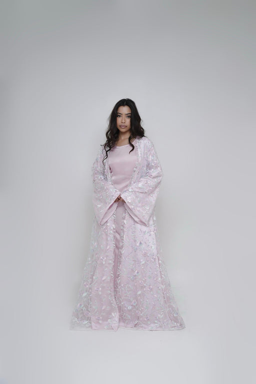 L’ensemble Lilac comprend un hijab, une sous-abaya et un kimono, conçu pour offrir confort et élégance. Le kimono combine du tulle léger et du tiss...